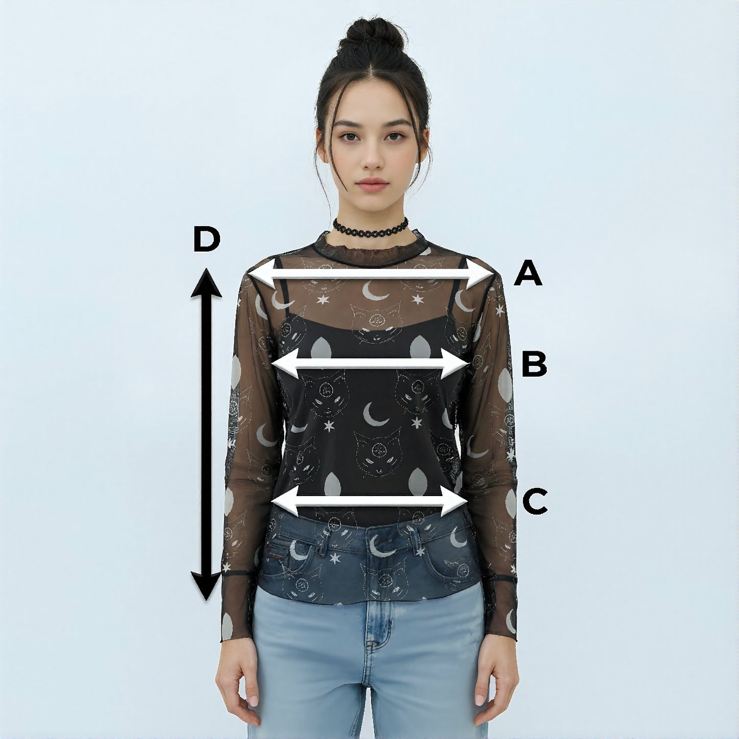 Black transparent top with skulls