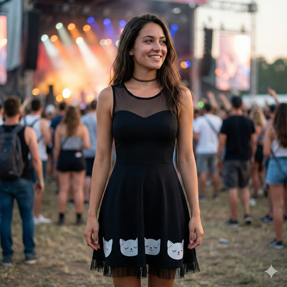Robe femme avec chats imprimés